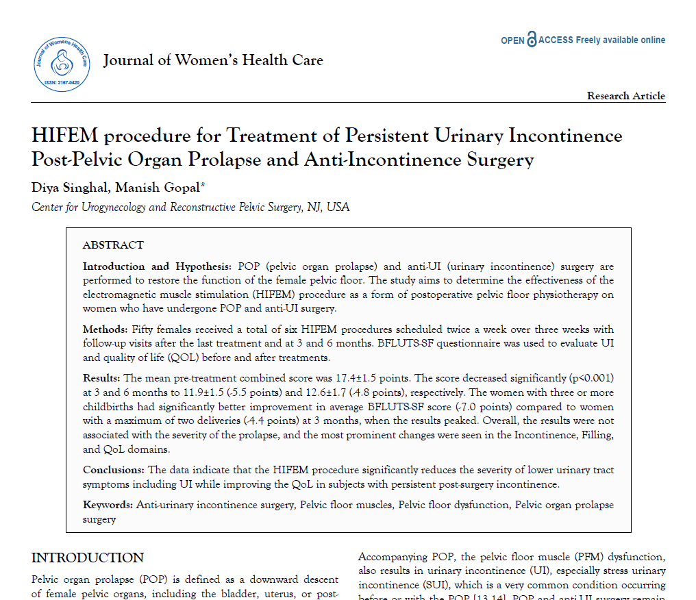 Procedimento com HIFEM para Tratamento da Incontinência Urinária Persistente Após Prolapso de Órgãos Pélvicos e Cirurgia Anti-incontinência