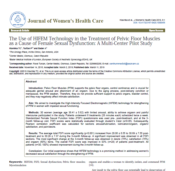 Tecnologia HIFEM no Tratamento dos Músculos do Assoalho Pélvico como Causa de Disfunção Sexual Feminina: Estudo Piloto Multicêntrico